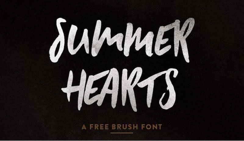Summer Hearts is a free, hand-drawn brush font created by type designer Jeremy Vessey. This all-caps font uses lowercase letters as stylistic variations of the uppercase characters.